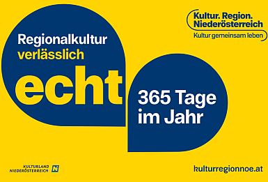 Regionalkultur findet an 365 Tagen in allen 573 Gemeinden Niederösterreichs statt. Sie ist das Herz jedes Kulturlandes, da sie von den Menschen mit all ihren Talenten und ihren Visionen getragen wird. Die Kultur.Region.Niederösterreich GmbH sieht sich als Bindeglied zu diesen Menschen. Mit vielen maßgeschneiderten Angeboten, Weiterbildungsprogrammen, innovativen Veranstaltungen und nicht zuletzt mit einer großen Gemeindeoffensive trägt sie zur kulturellen Fülle in Niederösterreich bei.
