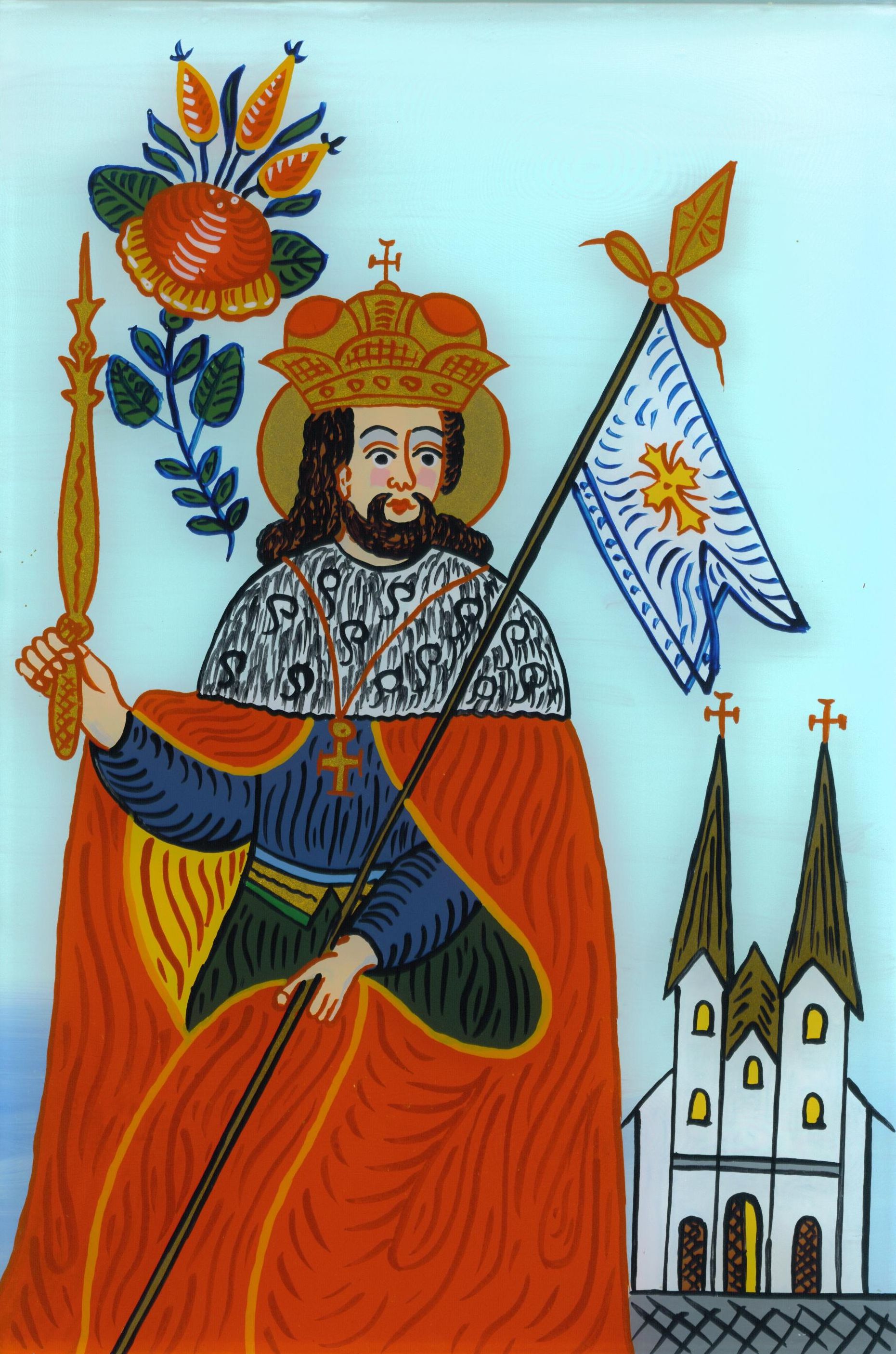Das Bild im Format 2810 x 1861 px zeigt den Heiligen Leopold. Am 15. November ist in Niederösterreich Landesfeiertag und man feiert den Heiligen Leopold, den Landespatron. Leopold III. war der sechste Markgraf aus der Familie der Babenberger. Im Investiturstreit war er zunächst neutral, schlug sich aber 1105 auf die Seite des späteren Kaisers Heinrichs V., der gegen seinen eigenen Vater, Heinrich IV., rebellierte. In der Folge heiratete er dessen Schwester Agnes, die Tochter Kaiser Heinrichs IV., Witwe Herzog Friedrichs I. von Schwaben und Mutter des späteren Königs Konrad III. (1106). Diese Verbindung mit dem salischen und gleichzeitig auch dem staufischen Haus förderte das Ansehen des Markgrafen erheblich; die Babenberger gehörten fortan zu den ersten Familien des Reiches. 1122 war Leopold maßgeblich an der Beendigung des Konfliktes zwischen Kaiser und Papst beteiligt (Wormser Konkordat). Sein Einfluss und sein Prestige waren so stark gewachsen, dass man ihm nach dem Tod seines Schwagers Heinrich V. die Krone des Reiches anbot, was er jedoch ablehnte (1125).
