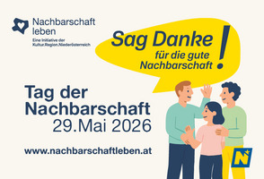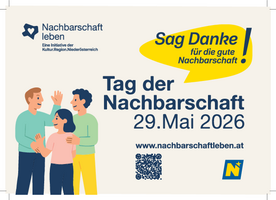 Format 823x560 px / WEB / Am 29. Mai ist der Tag der Nachbarschaft in ganz Niederösterreich! Unterstützen Sie diese Initiative für ein gutes Miteinander und laden Sie Ihre Sujets für Ihre Kommunikationskanäle kostenfrei herunter! Dieses Sujet ist für die Website gedacht. In der Suche unter "Nachbarschaft", oder über den Quick-Link werden alle verfügbaren Sujets bereitgestellt.