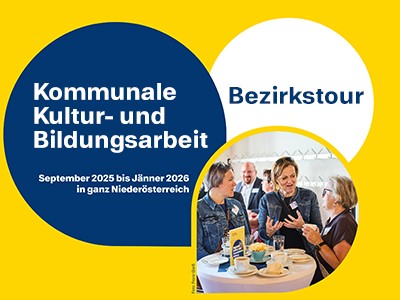 2025 treffen sich erstmals die NÖ Kulturverantwortlichen und die Bildungsgemeinderätinnen und -räte auf Bezirksebene. Unsere Tour startet Ende September, alle Infos und die Möglichkeit zur Anmeldung in Kürze!