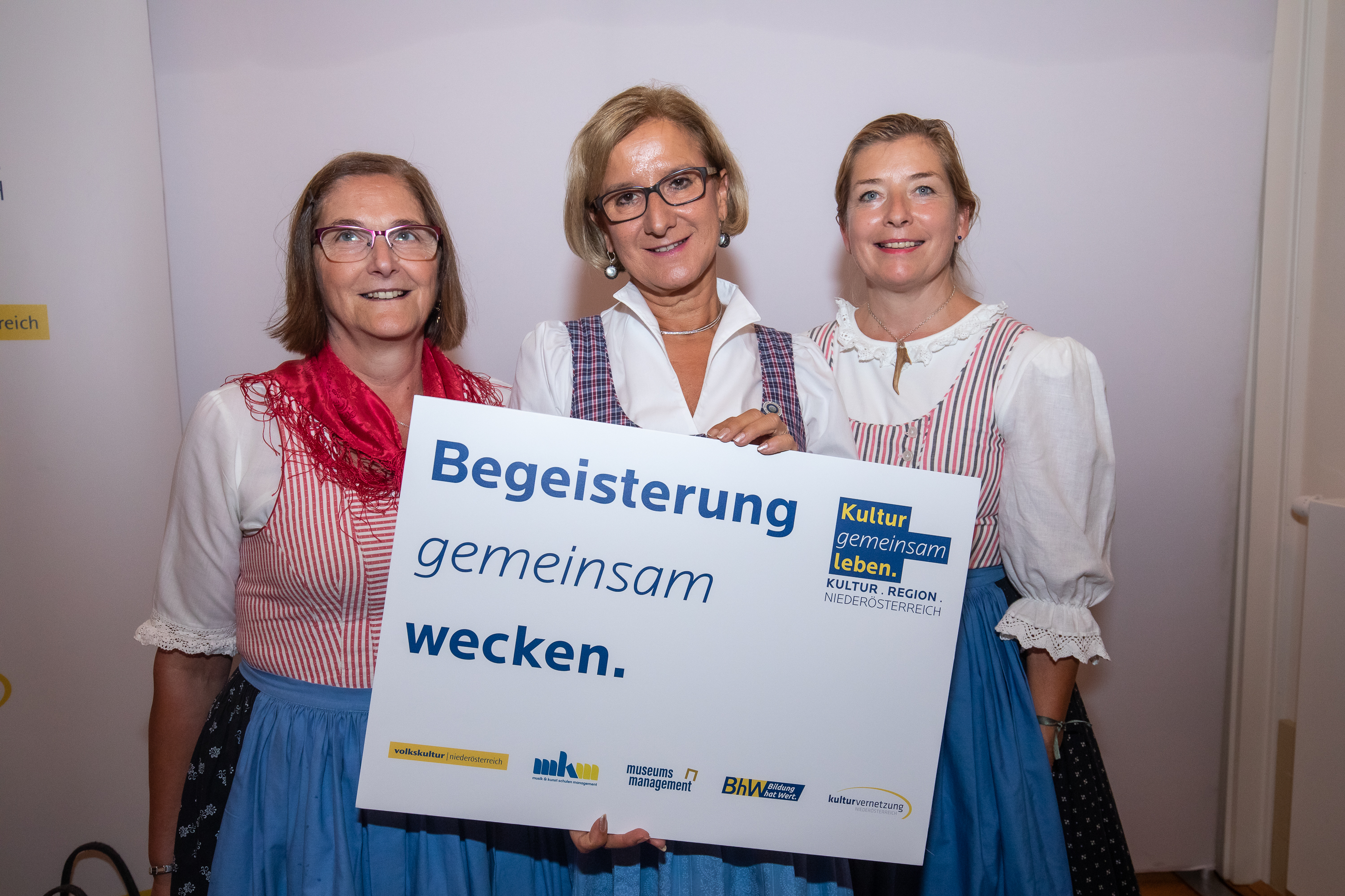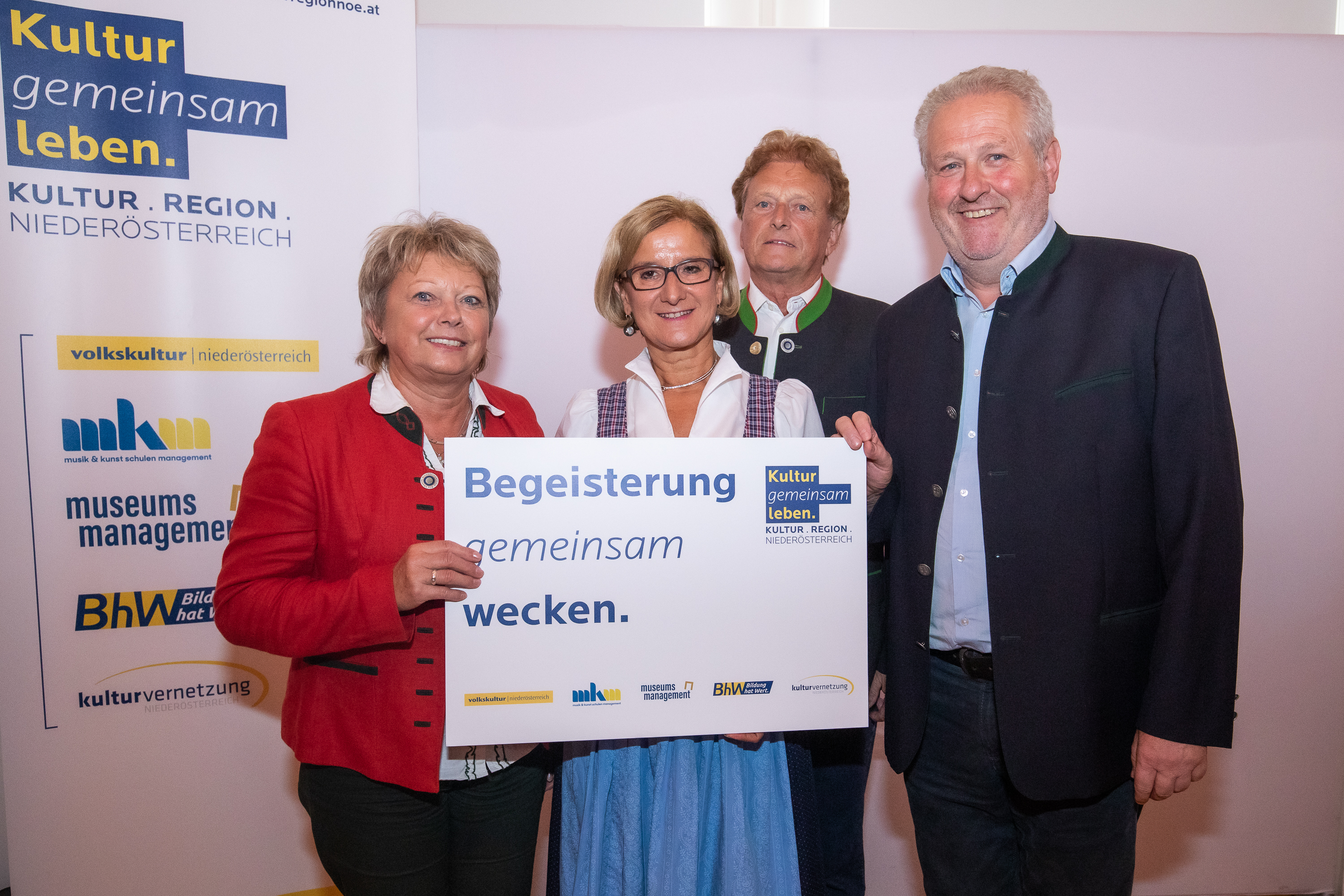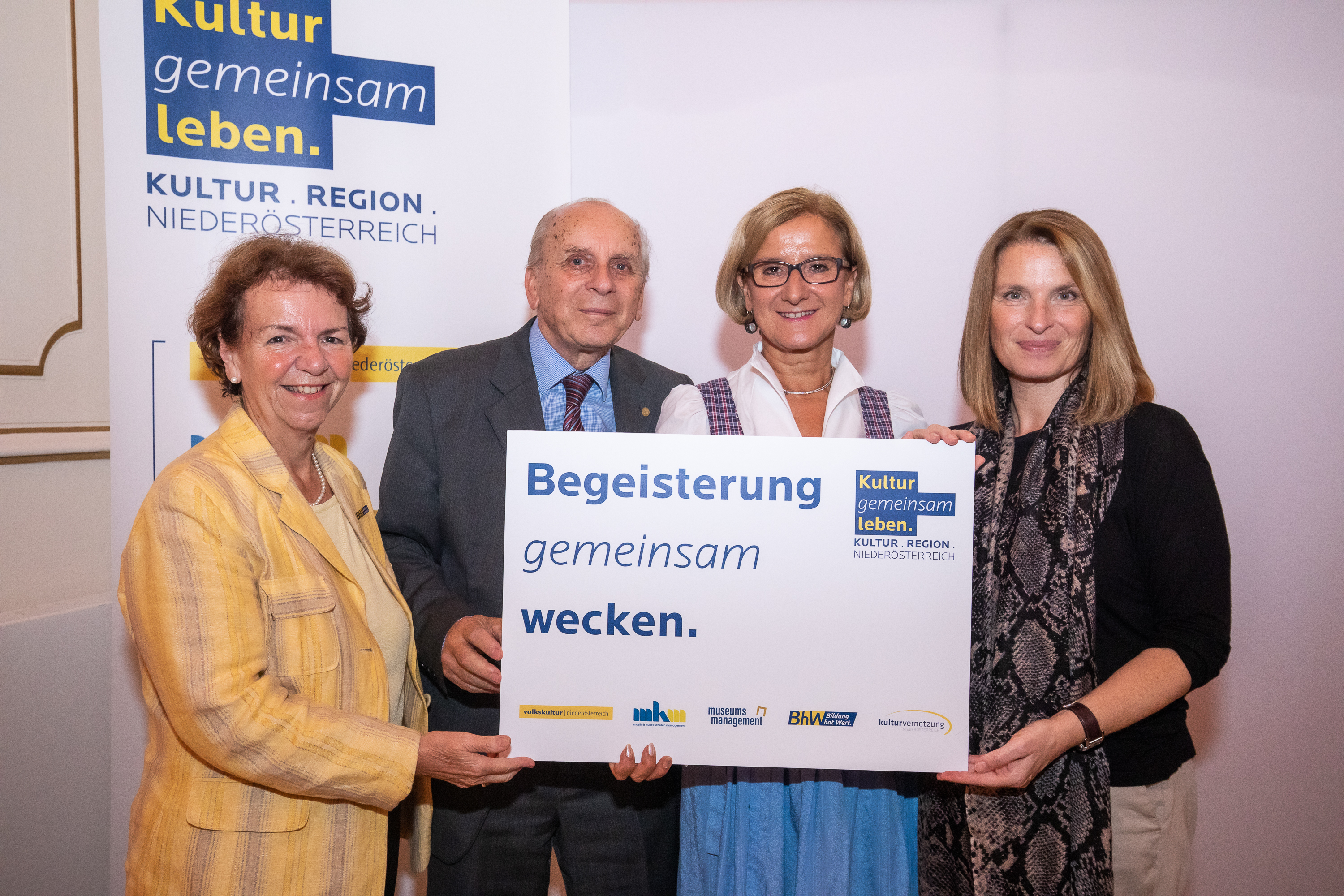 Alois Stöger, Bezirkssprecher Kultur.Region.Niederösterreich, Landeshauptfrau Johanna Mikl-Leitner, Barbara Stöckl Copyright: Moni Fellner