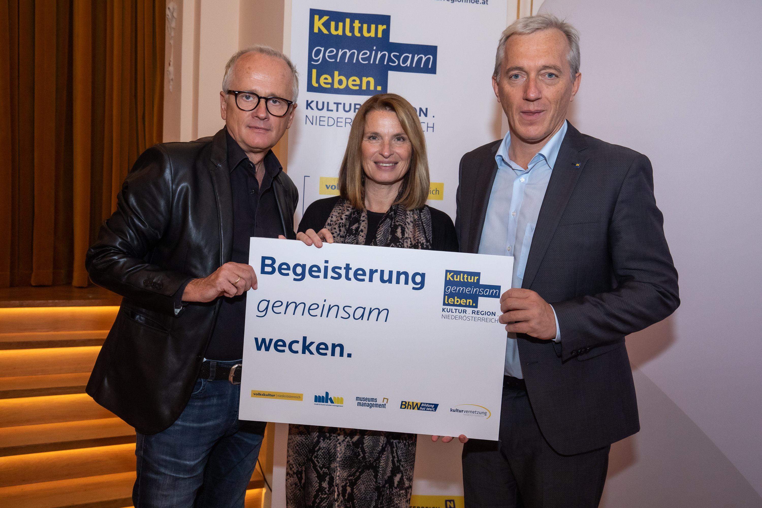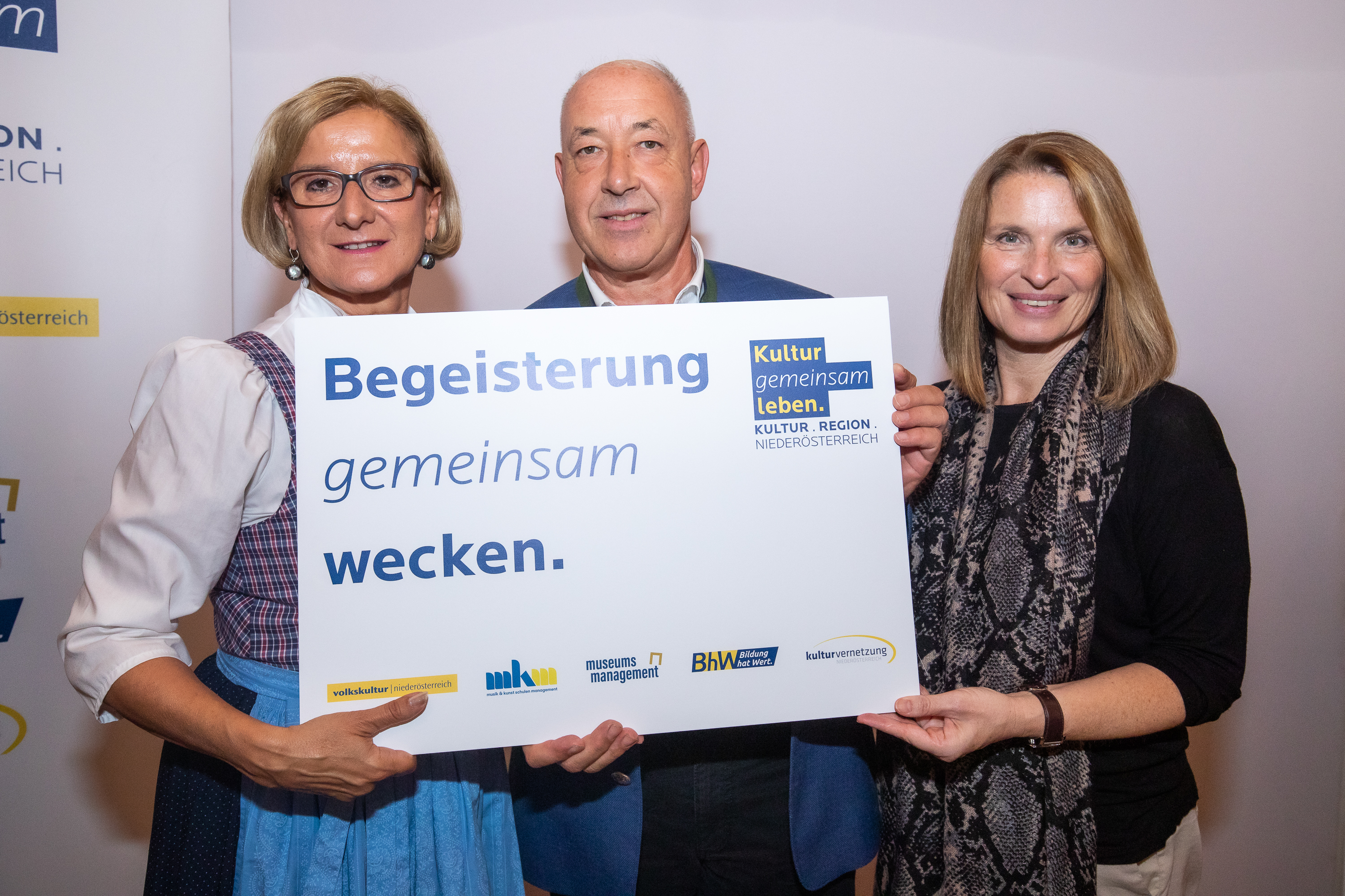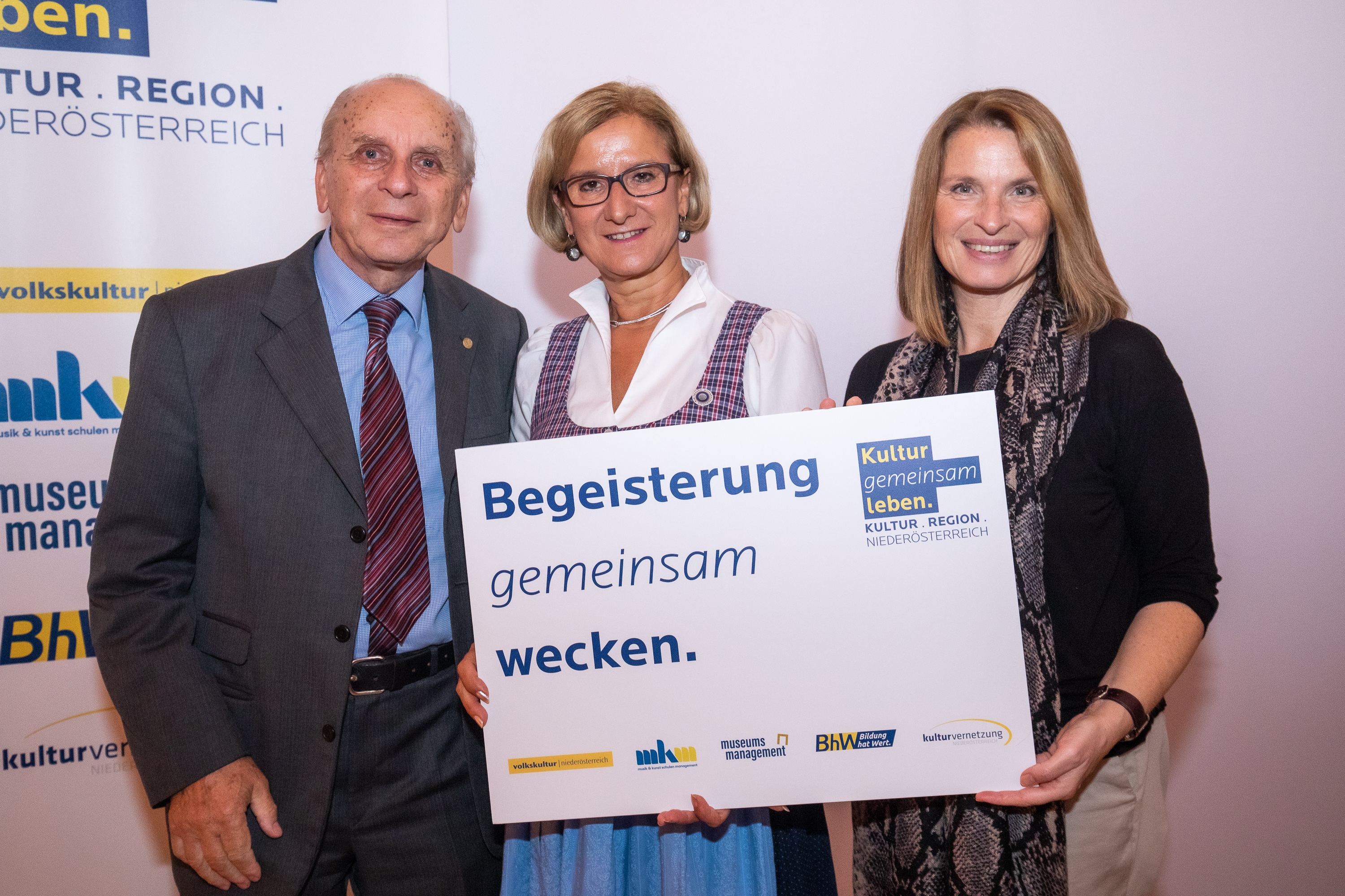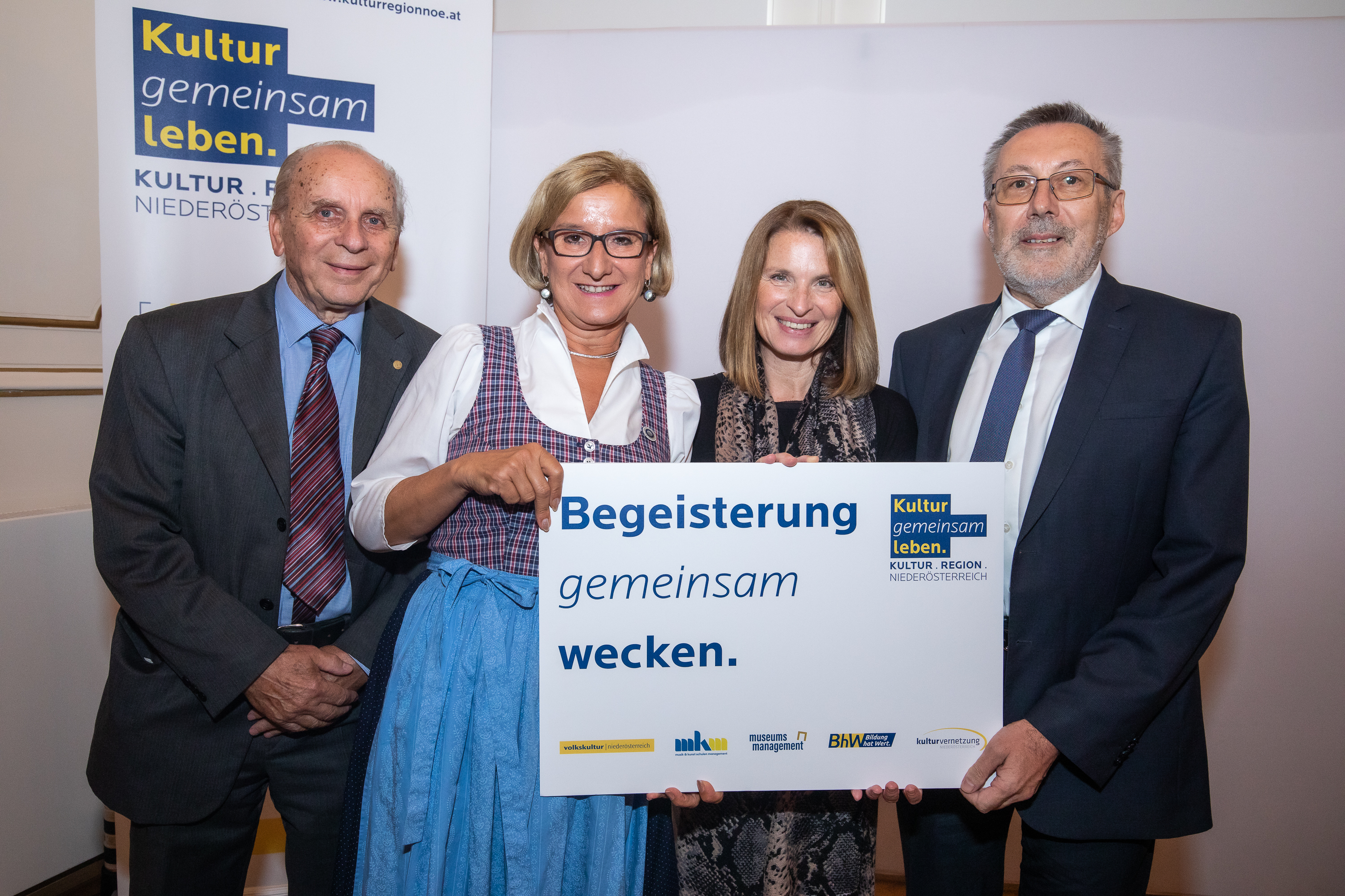 Alois Stöger, Bezirkssprecher Kultur.Region.Niederösterreich, Landeshauptfrau Johanna Mikl-Leitner, Barbara Stöckl Copyright: Moni Fellner